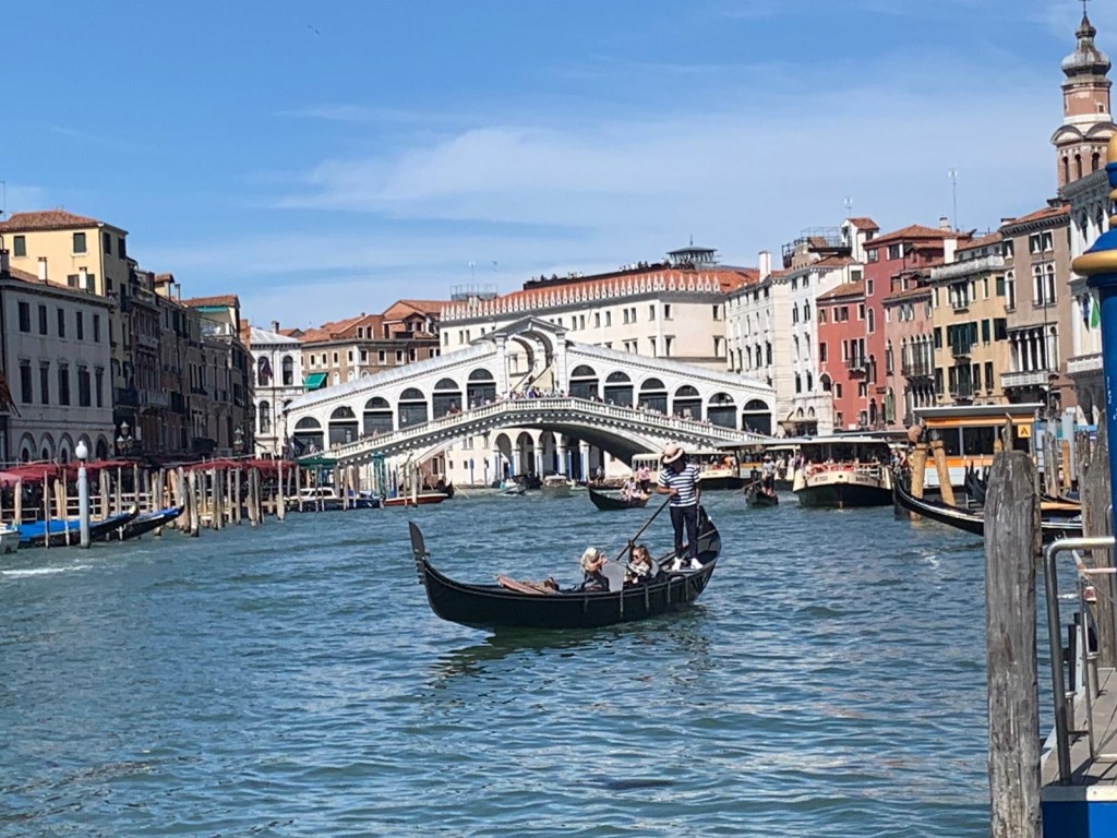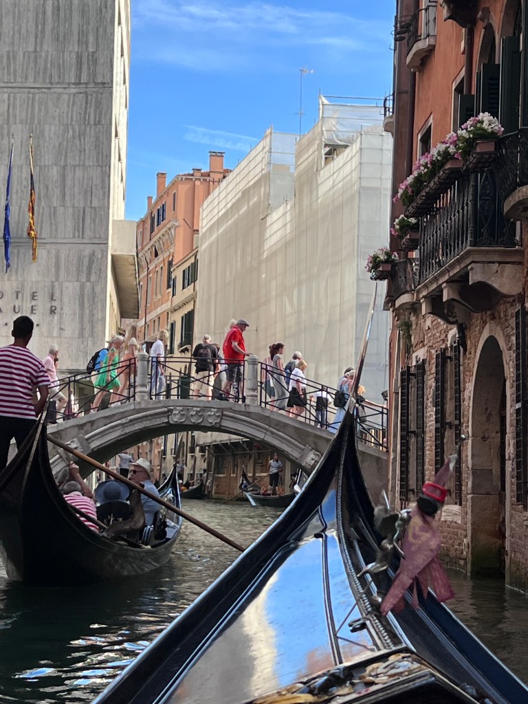 There was only so much one could do in a day, but Dan and I really wanted to see the famous Rialto Bridge. Made of stone and crossing the Grand Canal, it is one of the world’s most famous bridges. It was filled with shops and tourists. After a quick visit we headed away from the congestion. On our way back toward our hotel, we stopped for a last Aperol Spritz, and gelato.
