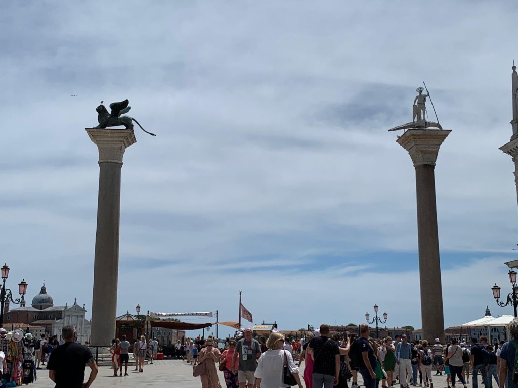 We dropped off our purchases in our room and headed back toward St. Mark’s Square and the Doge’s Palace. We had tickets at 11:30 AM for the Itinerari Segreti (the Secret Itineraries) tour, but had a little time to kill. You can’t but notice two stone columns that flank the entrance to St. Mark’s Square from the Grand Canal. They were erected in the mid-13th century. Gambling was allowed between them and public executions as well. One features a winged lion, the symbol of St. Mark and the other holds a statue of St. Theodore standing over a dead crocodile. He was Venice’s patron saint until he was replaced by St. Mark. What most people don’t know is that there were supposed to be three columns. A ship carrying one of them sunk, and given that the lagoon’s floor is thick with clay, it is most likely never going to be found.