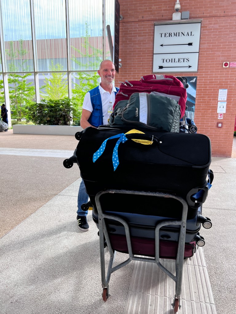 Getting to the gate was hassle free. I took some time shopping at the duty free shop for a bottle of wine for Jonathan. I used an app Paul Benfer had told me about called Vivino. It rates the quality of wine and I succeeded in finding a really good bottle at a decent price. Meanwhile, the airline needed more overhead bin space so they offered to check extra bags for free all the way through to your final destination. We said yes, and had one less bag to carry, with the bottle of wine safely wrapped in clothing.