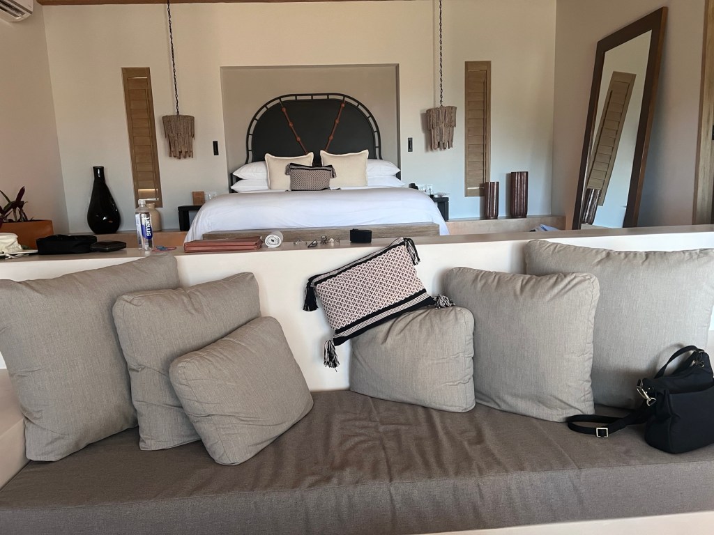 After what felt to be an hour of bouncing around on the dirt road (it was probably only 15 minutes) the gates to Más Olas opened and we entered a little piece of paradise. The staff greeted us with a cold drink of guava juice with rosemary, which was very much appreciated. A golf cart then dropped all of us off at our respective rooms.