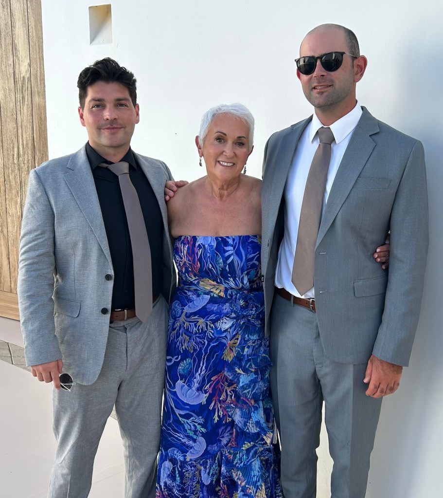 My sister Amy on her way to the ceremony with her two sons, Eli on the left and Gregory on the right.