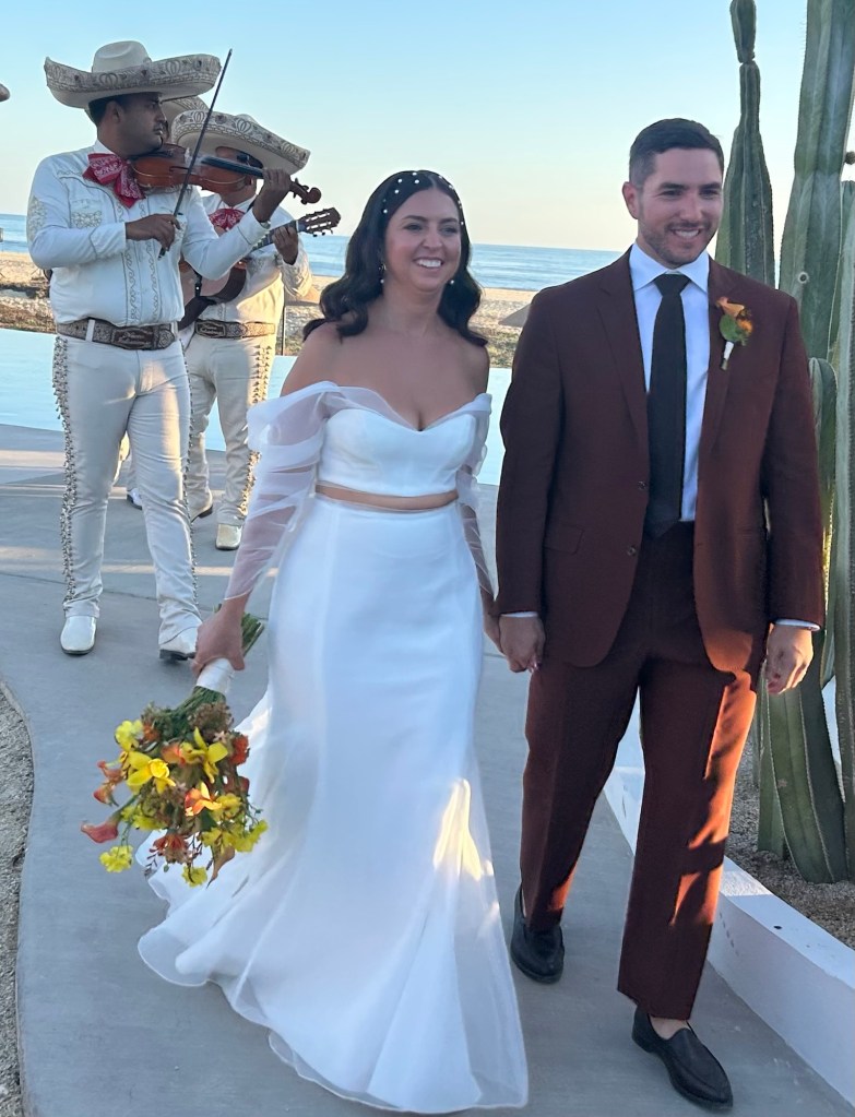 Greeting the guests as they took their seats for the wedding was a chuppah made up of beautiful orange flowers and a Mariachi band. For the processional the Mariachis played music befitting a wedding.