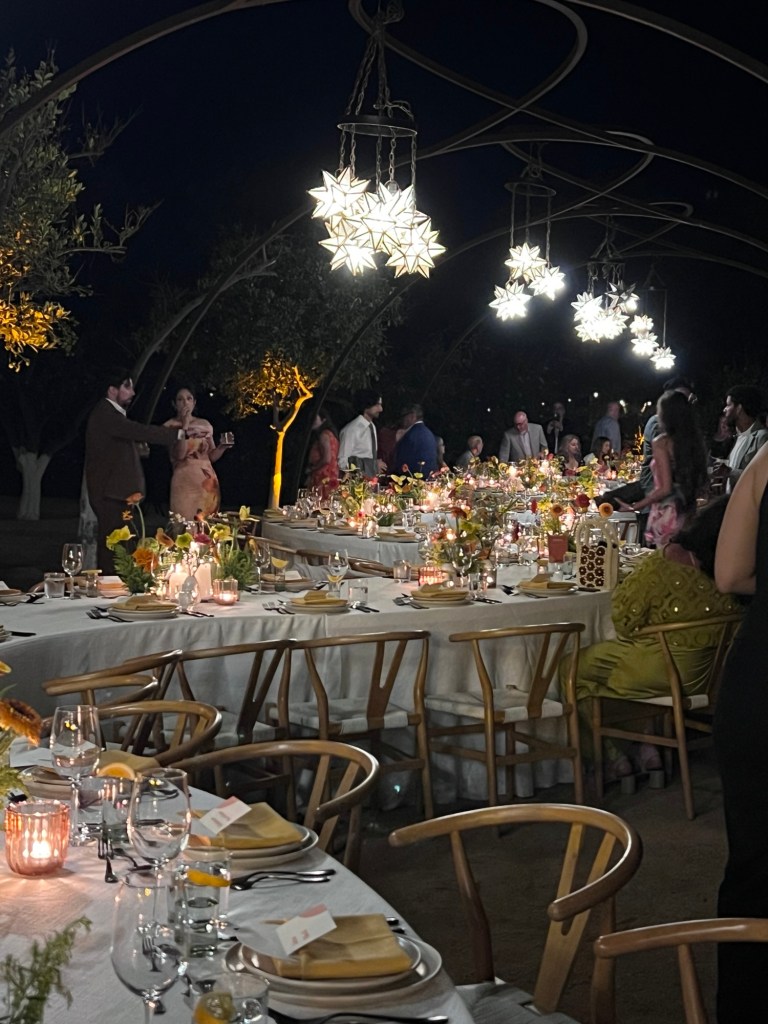 As dusk set-in all of us were directed to the outdoor dining area. A serpentine table was set with flowers, candles and lights and was so gorgeous it took your breath away. It’s funny, but I hardly remember the food that was served except for the largest prawns I’ve ever seen, risotto, and slices of beef cooked to perfection. The desserts looked like gems with each one more beautiful than the next.