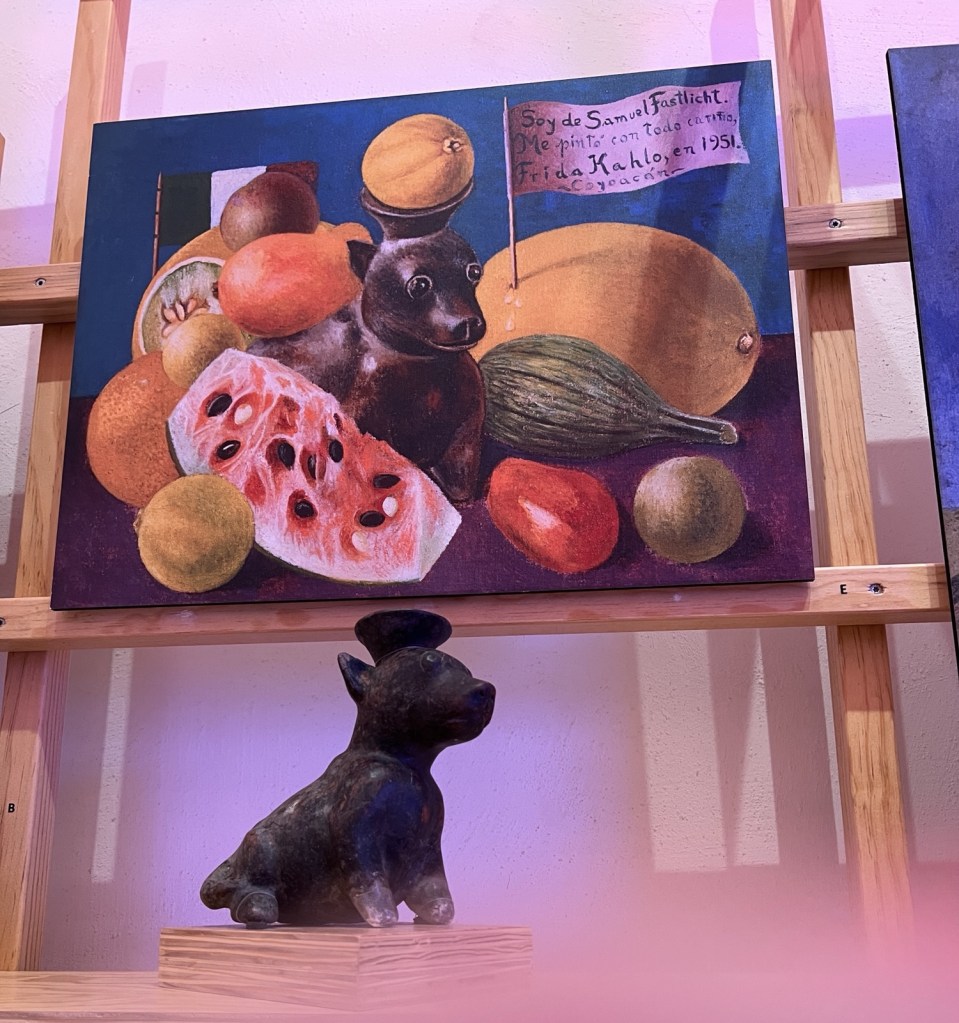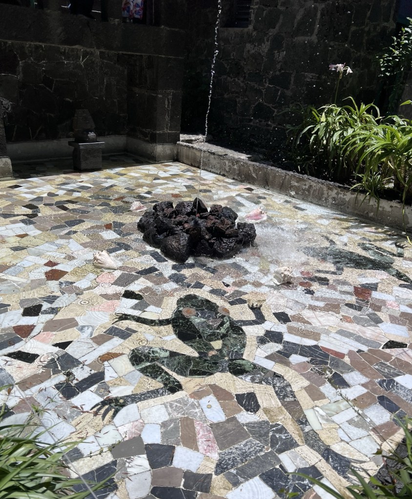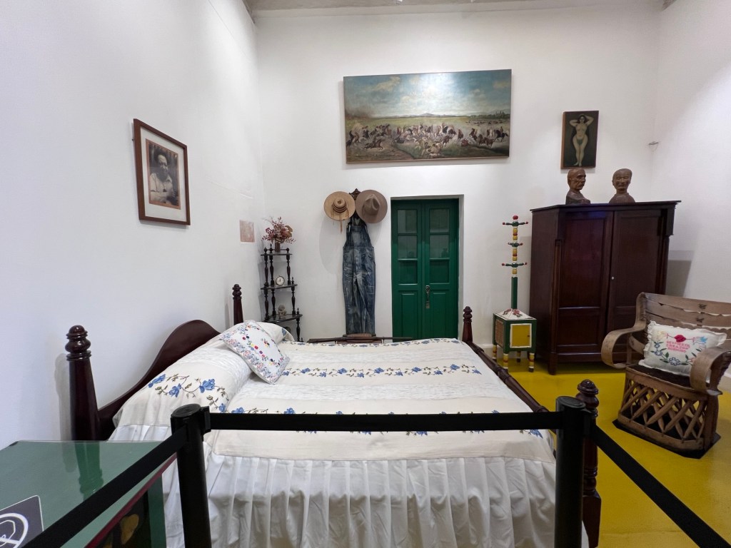 The house was built by Frida Khalo’s father, Guillermo in 1905. He was originally from Germany and made a living as a professional photographer. Her mother, Matilde Calderon y Gonzalez, was of indigenous and Spanish descent and a devout Catholic. Kahlo was born in the blue house in 1907. It was her lifelong residence, her creative sanctuary, and where she died in 1954 at the age of 47. Even in death she is still literally in the house. Her ashes are kept in a pre-Hispanic frog shaped urn which sits on a table in her bedroom. I found out later that the urn’s toad shape symbolized her affection for her husband, Diego Rivera. Her nickname for him was “el sapo” or the frog. If you’ve seen photos of him, you might understand why she called him that. He was an unlikely lady’s man, but his artistic talent, personality and fame must have been what drew women to him.